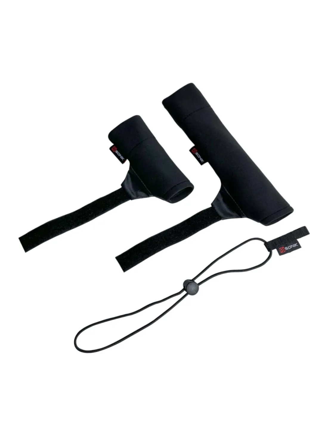 De Sonik Elastic Tip Protectors zijn gemaakt van dik 3 mm neopreen met een dubbele dikte van 6 mm aan beide uiteinden en zijn ideaal voor het beschermen van hengeltoppen en -kolven tijdens transport. De uiteinden en uiteinden zijn verbonden met een dik elastiek dat geschikt is voor tweedelige hengels van 9ft tot 13ft. Het klittenband met slipspiraal kan strakker worden aangetrokken voor extra veiligheid. Elastische reelband is ook inbegrepen om het handvat van de molen vast te zetten als deze opgevouwen is.