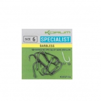 De Xpert Specialist haken van Korum hebben een dikke draad en een korte steel. Dankzij de 12 graden omlaag gedraaid oog draait de haak automatisch in de bek van de vis . De haak is chemisch geslepen met een perfect anti schittering afwerking waardoor de haak langer scherp blijft .
