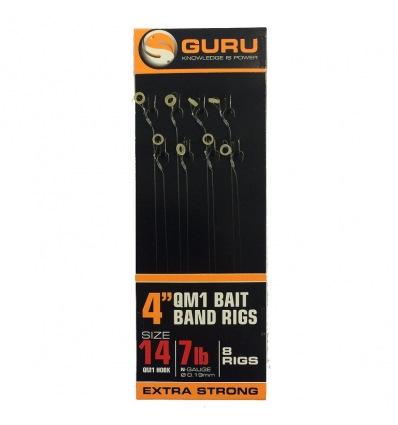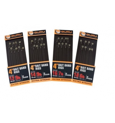 De zogenaamde Bait-bands zij niet meer weg te denken binnen de hedendaagse visserij. Een simpel maar zeer doeltreffend product welke niet op een hair mag ontbreken. Guru heeft deze daarom alvast voor u op de hair gezet. De onderlijn is gemaakt van Guru N-Gauge onderlijnmateriaal en geknoopt met MWG haken. De MWG haken hebben een brede bek een een naar binnen gedraaide vlijmscherpe punt. Onderop de haak zit een rubber verwerkt wat er voor zorgt dat de afstand tussen de haak en het haakaas kan worden versteld. De 4'' versie (10 cm.) ideaal voor gebruik met een method/pellet feeder.