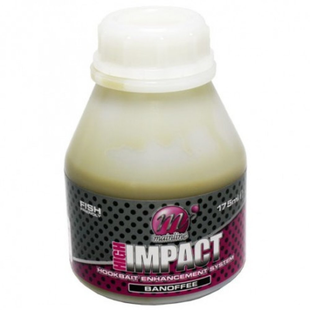 De Mainline High Impact Banoffee Dip zorgt voor een nog grotere aantrekkingskracht van uw boilie. Deze flavour is perfect te gebruiken i.c.m. de Mainline High Impact Banoffee (pop up) boilies. Week het haakaas gedurende 5-30 minuten in deze Boosted Hookbait Dip. Nadat het aas doordrongen is, is deze voorzien van toegevoegde attractors wat vaak resulteert in een toename van uw vangsten. De Mainline banoffee Dip wordt geleverd in een goed afluitbare flacon met een inhoud van van 175ml.