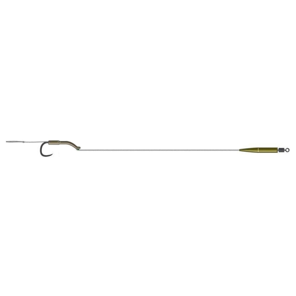 Een rig die het best tot zijn recht komt tijdens ‘stadaard’ situaties of bij het vissen tegen obstakels. Door de gemiddelde lengte en een goede krimpkous en Jungle Hook behoort deze rig absoluut tot onze eerste keus wanneer we uitpakken op wateren waar de karpers nog niet zo vaak zijn belaagd. Geknoopt met ons zeer soepele Chameleon. Hierdoor voelt de onderlijn zeer soepel aan en zal de aaspresentatie zeer natuurlijk overkomen op een karper. Dit in combinatie met een ijzersterke Jungle Hook en een line aligner maakt dat de haak ook zeer goed inzetbaar is tijdens het obstakelvissen. De line aligner zorgt er namelijk voor dat de haak op de juiste positie inhaakt.Verkrijgbaar in de haakmaten 4 en 6.