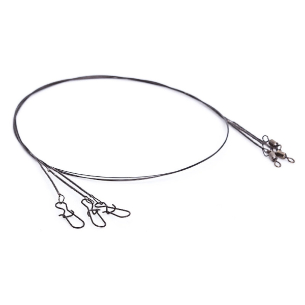 VMC Blackflex C708 stalen onderlijnen, hitteverzegelde traces van hoge kwaliteit met een sterk gecrimpte lusbevestiging aan beide uiteinden. Voorzien van een sterke wartel en Duolock sterke QR-bevestiging aan de andere kant. Verkrijgbaar in een reeks van steeds zwaardere diameters en breeksterktes. Ze zijn een perfecte optie als er roofvissen op de loer liggen en onmisbaar als je op snoek vist.