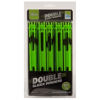De glijdende schuif kan langs de volledige lengte van het tuigen plankje worden bewogen. Er zit een kleine uitstaande pen op beide einden van de schuif zodat het niet uitmaakt op welke manier u het tuigje opwindt. De V-vormige uitsparing voor de haak is zodanig ontworpen dat u zelfs haken maat 26 kunt gebruiken zonder deze te beschadigen. Elk tuigen plankje heeft zijn eigen kleur omdat er verschillen zijn in lengte en breedte. Elke plank biedt ruimte aan twee complete tuigen met dobber. De groene planken zijn 20cm lang en er zitten er 10 in een verpakking.