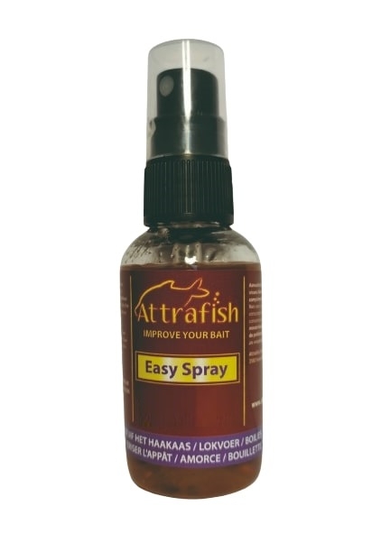 Attrafish Easy Sprays zijn hoog geconcentreerd en bestemd voor het bestuiven van allerlei soorten haakaas. Maar ook voederkorven, kleinere porties lokvoer en boilies kun je snel een extra stimulans geven. De sprays zorgen voor een hogere vangkracht dankzij de lokkende en eetlustopwekkende werking. Dit wordt mede tot stand gebracht door enkel gebruik te maken van de beste ingrediënten, welke ook onder water zeker hun nut zullen bewijzen.