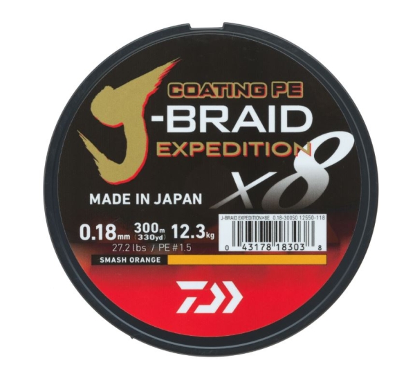 De Daiwa J-Braid Expedition X8E Gevlochten Lijn in de kleur Smash Orange biedt een lengte van 150 meter en is verkrijgbaar in meerdere diameters. Deze in Japan gemaakte lijn heeft geen rek, wat zorgt voor een hoge lineaire sterkte en een uitstekende natte knoopsterkte. De 8-vlecht, rond gevlochten constructie en de oppervlaktecoating van siliconen dragen bij aan de duurzaamheid en prestaties, waardoor deze lijn ideaal is voor verschillende veeleisende visomstandigheden.