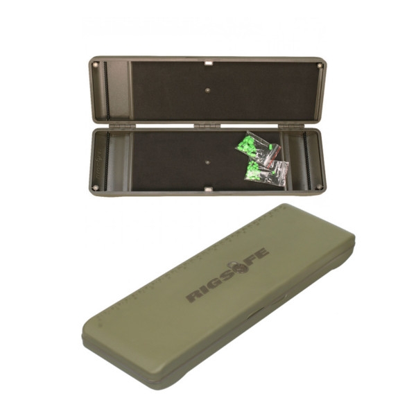 Speciaal voor de gebruikers van de langere onderlijnen is er nu een grote broer de Large Rigsafe van Korda! Met zijn modern en robuust design biedt hij plaats aan maar liefst 90 rigs met een lengte tot 30cm. Door handig gebruik te maken van de zogenaamde double pins kan je ook onderlijnen die nog niet voorzien zijn van een wartel of lus opbergen. Hierdoor heb je de mogelijkheid om op het allerlaatste moment de lengte te bepalen. De lange RigSafe is voorzien van een magneetsluiting. Deze is niet alleen erg stevig, maar daarnaast ook nog handig bij gebruik met natte en koude handen.