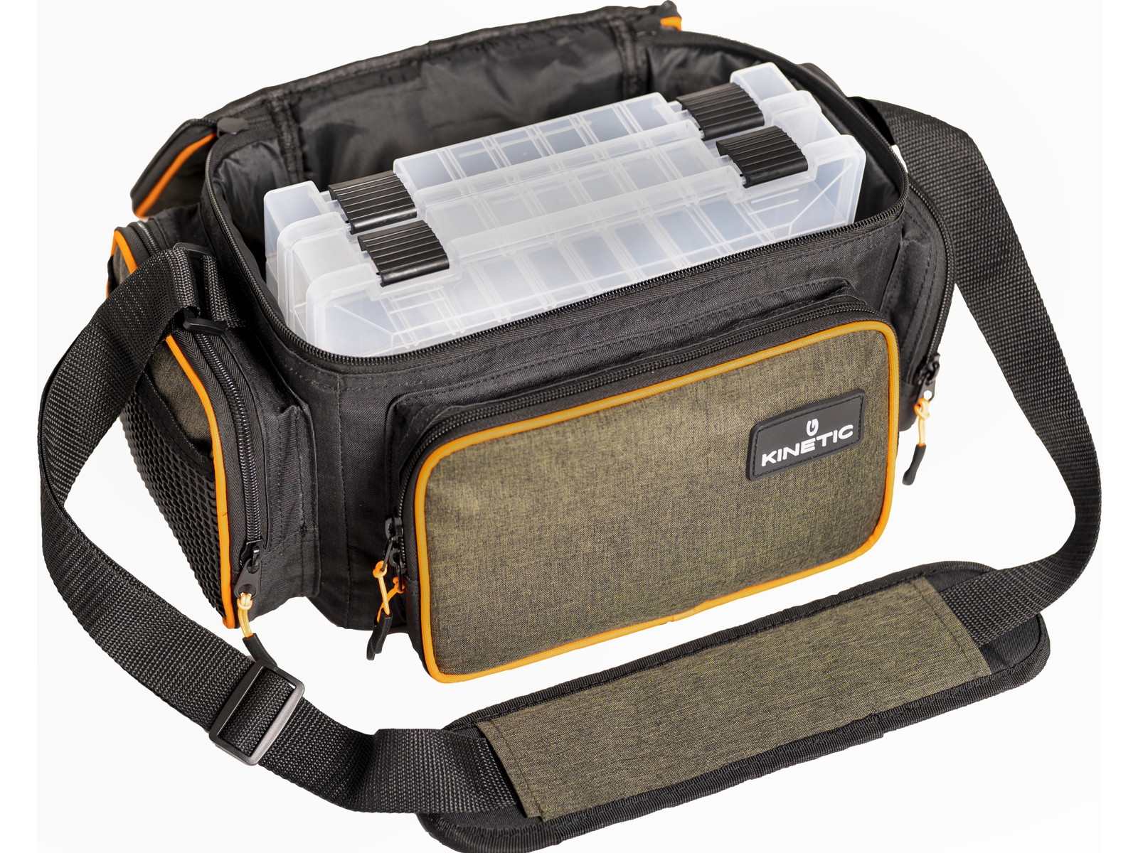Houd al je visspullen bij de hand met deze praktische draagtas van Kinetic. Met een gemakkelijk toegankelijk hoofdvak, twee zijvakken en een voorvak kun je je spullen perfect organiseren. Het hoofdvak is voorzien van twee kunstaasdozen. Verder heeft de tas een gemakkelijk verstelbare schouderriem. Dit is de optimale Lure bag voor de moderne, mobiele kunstaasvisser.