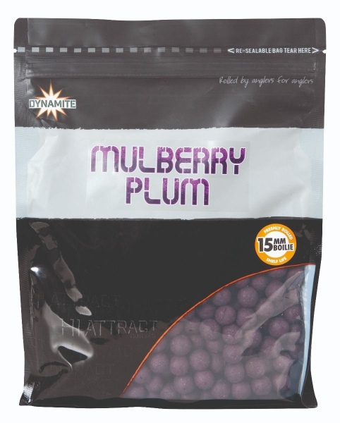 Nieuw en attractief, dat zijn de Mulberry Plum boilies van Dynamite Baits! Gemaakt van Bramen en Pruimen. De zoete smaak in combinatie met de aantrekkelijke kleur is onweerstaanbaar voor de karper.