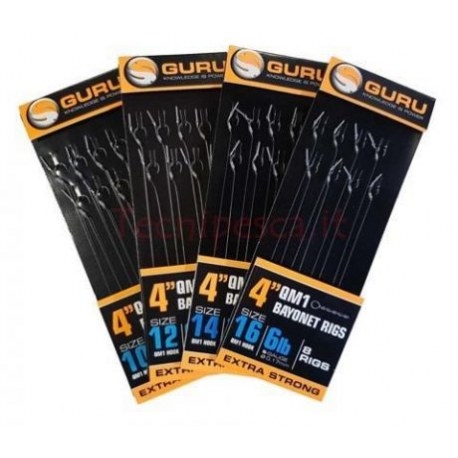 Deze perfect gebonden onderlijnen zijn ideaal geschikt voor alle method feeder visserij. Met de Guru QM1 Ready Rig Bayonet kun je heel makkelijk je haakaas op de hair draaien, door middel van zijn schroefdraad. Deze onderlijnen zijn voorzien van QM1 haken en N-Gauge onderlijn materiaal. De QM1 haken staan bekend om hun agressieve inhaking, waardoor bijna elke aanbeet vis oplevert. Tevens passen deze onderlijnen perfect in de Guru Rig Case, zodat de opslag van veel onderlijnen geen probleem is.