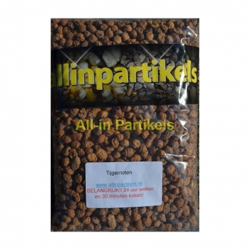 De All-In Partikels Tijgernoten is een bijzondere partikel, en zeer dressuur doorbrekend. ZEER BELANGRIJK: Voor gebruik van de tijgernoten dient het eerst 24 uur geweekt te worden en 30-45 minuten koken. Dit is heel belangrijk voor de gezondheid van de vis. Eet de vis het ongeweekt, gaat het in de buik uitzetten, en dit kan hele nare gevolgen hebben. Zelfs de dood voor de karper.