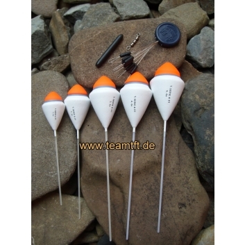 Deze sets zijn gecombineerd met een Lago dobber, TFT tremarella loodje, rubber stoppers en techno wartel en zijn een perfect uitgebalanceerde samenstelling. Door het loodje is deze set sneller en dieper te vissen dan bv een glaasje.