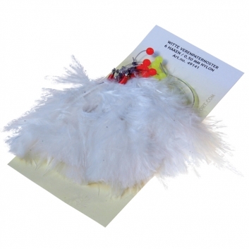 Onder alle omstandigheden is de Albatros veren paternoster een perfecte vanger. Voorzien van kralen voor extra aantrekkingskracht en is goed geknoopt en uitgevoerd met 4 stevige en vlijmscherpe haken. Voorzien van twee lussen voor bevestiging van lood en wartel.