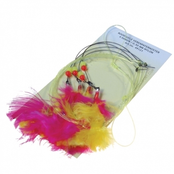 Onder alle omstandigheden is de Albatros veren paternoster een perfecte vanger. Voorzien van kralen voor extra aantrekkingskracht en is goed geknoopt en uitgevoerd met 6 stevige en vlijmscherpe haken. Voorzien van twee lussen voor bevestiging van lood en wartel.